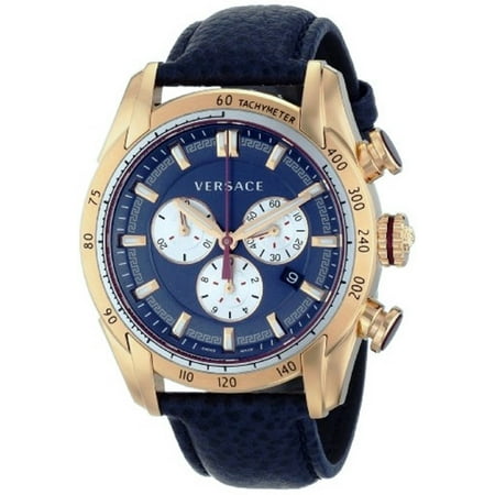 Versace Mens V Ray Rose Gold One Watch With Blue Leather