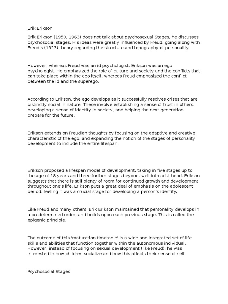 Erik Erikson Example 1 Erik Eriksons Psychosocial